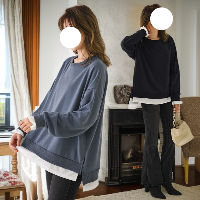 カジュアルなレディースルーズフィットトレーナーブラウス