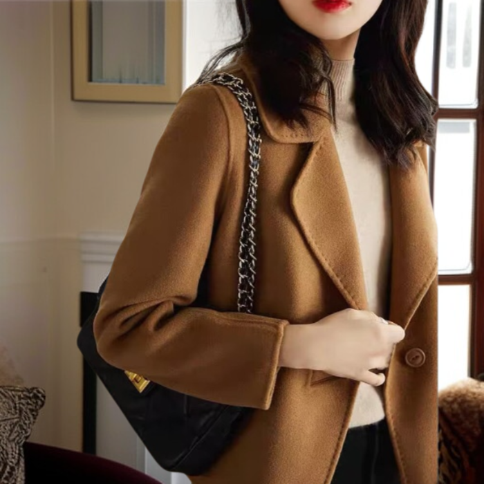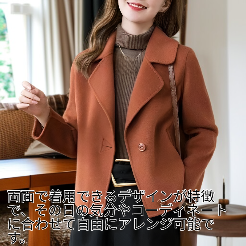 小柄女性向け秋新作ウールリバーシブルショートコート